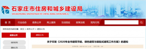 近日,石家庄市住建局印发《2020年全市建筑节能、绿色建筑与装配式建筑工作方案》,(以下简称《方案》,)对今年全市建筑节能、可再生能源建筑应用等工作作出安排部署。