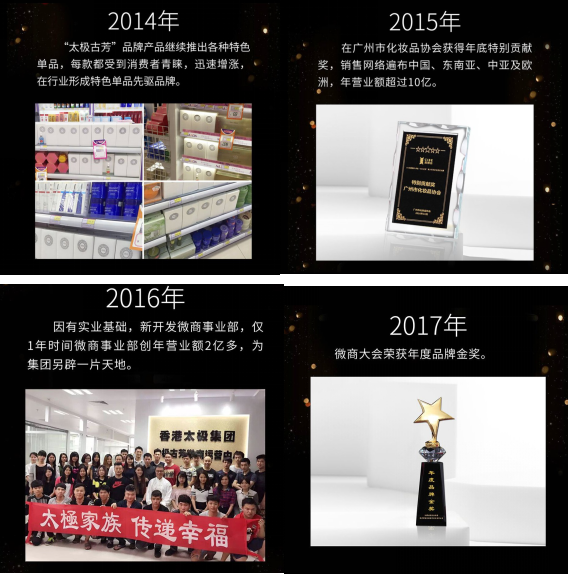 认识一个平台,先要了解这个企业的背景。香港太极集团,成立于1998年,一直专注于中医草本护肤品研发与生产,是国内知名的中医美容龙头企业,截止2018年集团销售总额达10亿元,预计2021年将跨越百亿大关。