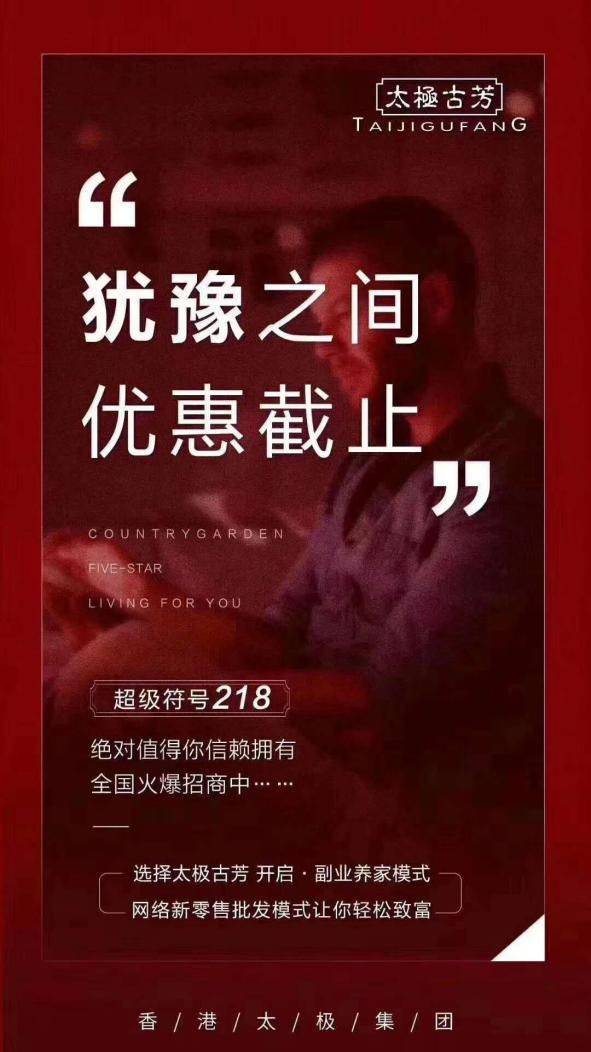 总之,太极古芳万人拼团,拼的多,赚的多,持股多,分红分的多!人人分红,人人平等,人人持股,每天发工资!如果你看懂了这个机会,联系我,即刻加入太极古芳。太极古芳官方咨询微信:CK809485786电话:13884337122