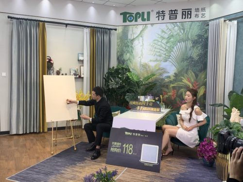 活动中,特普丽墙纸董事长杨冀先生、总经理杨帆先生亲临直播间,为广大业主朋友们答疑解惑,并送来专属福利,直播间人气一路高涨!