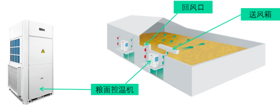 2. 无级调节,冷量按需输出,控温精确,解决了粮库内温度波动较大的问题;