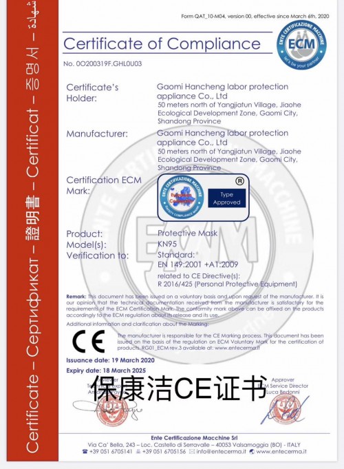 在欧盟,口罩属于PPE个人防护用品,自2019年起,欧盟新法规PPE Regulation (EU) 2016/425强制执行,所有出口欧盟的口罩必须在新法规的要求下获得CE认证证书,凡是贴有“CE认证”标志的产品就可在欧盟各成员国内销售,无须符合每个成员国的要求,从而实现了商品在欧盟成员国范围内的自由流通,但没有证书则不允许在欧盟市场销售。