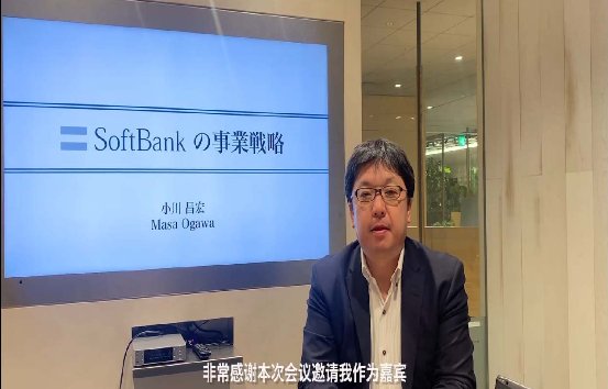 日本软银创新战略室室长董事小川昌弘祝贺视频画面。