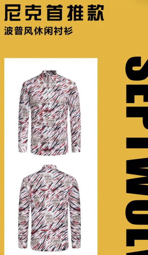 设计总监尼克推荐的是一款波普风休闲衬衫,前卫时髦的波普图案,结合明快亮眼的色调,正适合温暖的春天。纯棉面料的衬衫,质地柔软舒适,富有弹性且不易变形,上身体验感很好。印花采用了满印工艺,吸附性强,保色持久,是你的春日穿搭里实用性极强的单品。