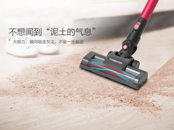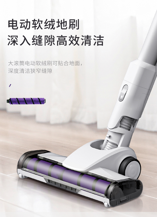 德尔玛吸尘器装置了数码无刷马达,此外还配置了软绒/碳纤维滚刷,能够深层次清除地板缝隙的灰尘。