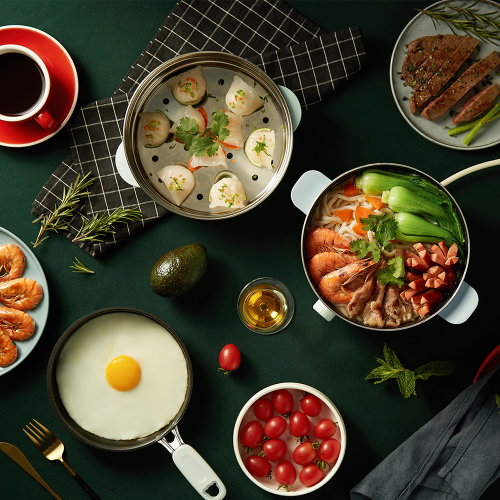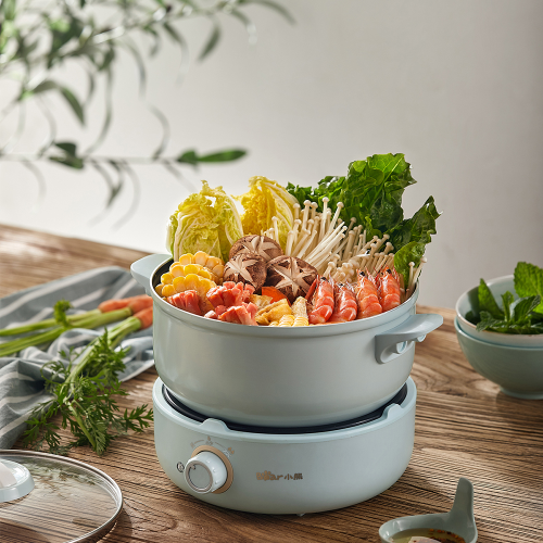 不同于普通的电火锅,这款小熊电火锅同时配备了蒸笼、煮锅、煎盘三种硬核配件,是个煮涮炒蒸煎烙样样擅长的全能选手。除了火锅功能之外,还能边涮火锅边烤肉,再来个鲜美的蒸海鲜,想想就口水直下三千尺。一锅多用,花样功能轻松pick!