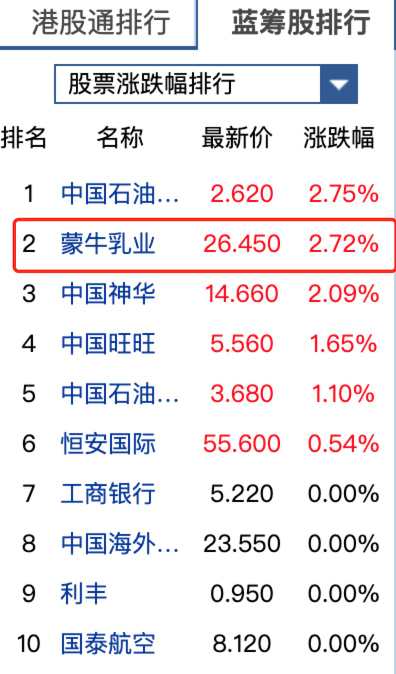 3月26日,蒙牛乳业(02319.HK)发布了2019 年财报,显示营业收入达790亿元,净利润达41亿元,增速引领行业。财报发布后,资本市场保持了对蒙牛增长韧性的看好。3月30日,蒙牛股价涨幅攀升至蓝筹股排行第二位。不少投行认为,在经济形势下行和乳业上游成本升高的背景下,蒙牛2019财年的表现超出了预期,并预判2020年上半年业绩虽受疫情影响,但蒙牛可以借助消费升级恢复到快速增长的轨道,值得长期持有。