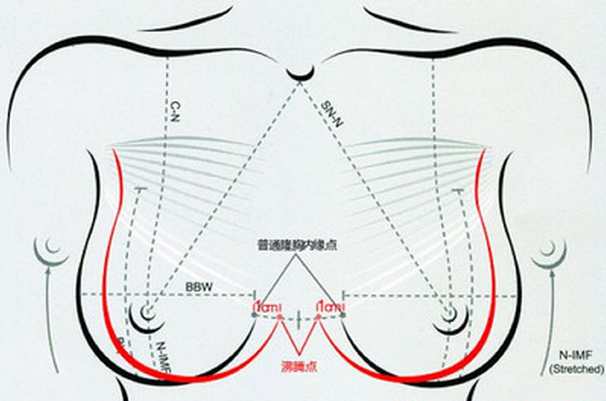 韩妃乳沟成形术,在植入位置上结合内窥镜使每一侧的内缘点能够较普通隆胸术更深入1cm。1cm的距离则能够塑造出更加自然深邃的乳沟效果,而这1cm没有特定的方向,要根据手术者的体形特点,向内、向上、向内侧上动态调整,这需要美容医生具备丰富的手术经验、专业的审美能力和高超的手术技艺。