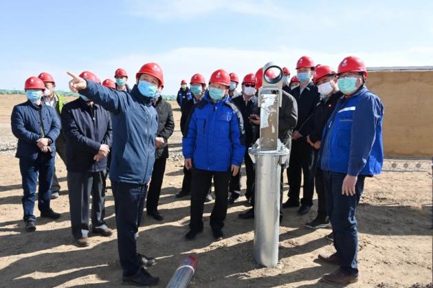国家非常重视新能源等重大项目的复工复产,它对稳定社会经济发展至关重要,而且影响着后续发展劲头。疫情期间,国务院发展研究中心副主任隆国强任组长的中办国办复工复产调研组一行,在青海省委常委、常务副省长李杰翔,黄河公司党委书记、董事长谢小平的陪同下到海南州特高压外送基地配套电源点I标段1000兆瓦光伏项目建设现场调研,对黄河公司在海南州特高压外送基地电源配置项目作为在2月13日成为青海省第一批复工重点建设项目,能够一手抓疫情防控一手抓复工复产工作给予高度肯定,他指出黄河公司作为央企,政治站位高、大局意识强,主动将企业发展融入国家发展战略,服务地方经济发展,充分展示了央企的责任和担当,李杰翔对黄河公司长期以来支持地方工业经济发展做出的贡献表示肯定。