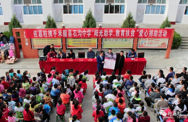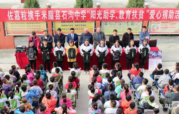 今天是第六个国家扶贫日,米脂小米高端品牌佐嘉粒公司携手米脂县石沟中学开展了“阳光助学、扶贫教育”爱心捐助活动,在寒冬快要来到的时候给石沟镇的学生带来温暖。