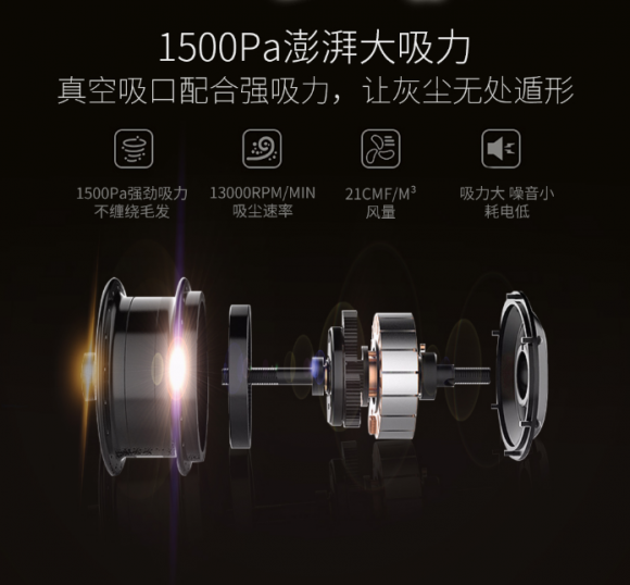 斐纳TOMEFON-TF-MCN858扫地机器人使用了能升级至1500pa澎湃大吸力的无刷电机,再通过真空吸口的设计能畅吸毛发不易缠绕;还针对了不同的灰尘设计了V型滚刷+100MM加宽刮条,V型滚刷以6组浓密软毛组成的滚刷能让清扫不留灰,而加宽刮条能有效防止毛发缠绕,相互搭配让洁净更进一步。