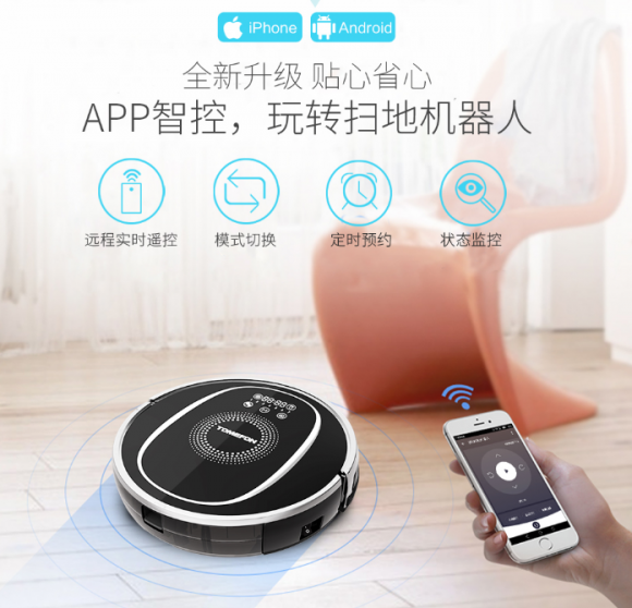 斐纳TOMEFON扫地机器人还搭载了APP智控功能可以进行远程实时遥控对机器人下达清扫指令,也能在手机上切换清扫模式或查看清扫状况等,让你时刻玩转扫地机器人!