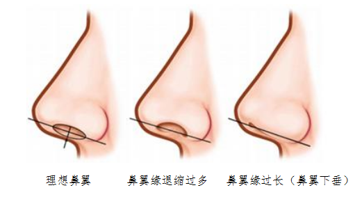 第三种是挛缩鼻造成的:有感染过或多次手术创伤的,引起鼻子挛缩变短、向后旋转(也就是上旋),这种相对来说好治疗。