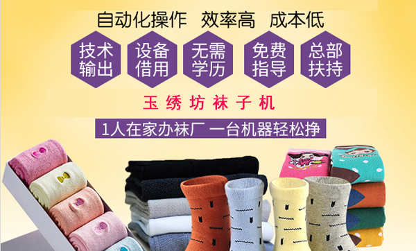 玉绣坊袜业价格亲民、使用寿命长,其生产的袜子透气、舒适、不臭脚、更健康,备受市场欢迎。当下国内袜业还有许多空白市场可待挖掘,而且人们对于袜子的需求只增不减,未来袜子机市场并将迎来更加多的发展机遇。