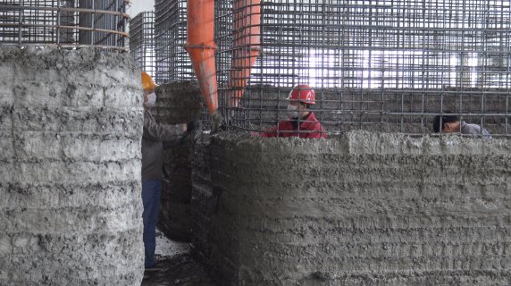 以前走过建筑工地,看到工人们加班加点披星戴月地施工,只为早点完工,方便开发商快速回笼资金。现在走进华商陆海的3D打印建筑房屋施工现场,这里不像建筑工地上人员众多,只有少量的开机人员和修配人员,施工基本实现自动化,各种建筑的结构和造型在这里都是有计算机图纸产生数控程序,通过建筑3D打印机实现。