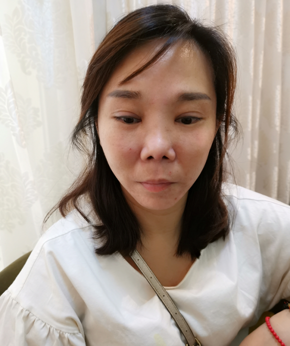 这位顾客是在15年的时候,去朋友介绍的机构在苹果肌的位置注射了不明注射物,注射完当时立刻就肿起来,那家机构告诉她注射以后都会这样,几天过去就会消下去。但结果并不然,半个月没消下去,顾客就去了家附近的医院打了青霉素消炎,没想到打完之后更肿了,于是又在不明注射物注射后的第3个月选择了中医针灸消肿,针灸1个月后消肿了。但是顾客觉得消肿后比之前还是肿好多。