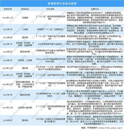 2011年以来,国家发布了一系列政策,鼓励景观照明行业发展。诸多产业政策支持为景观照明行业带来了难得的发展机遇。尤其是2019年8月国务院发布的《关于进一步激发文化和旅游消费潜力的意见》,提出大力发展夜间文旅经济,直接推动景观照明行业发展。