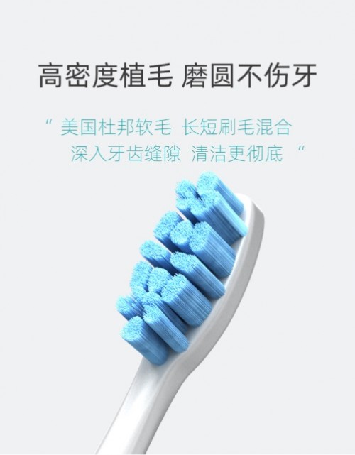 电动牙刷的震动马达很重要,其次就是牙刷刷头。刷头不好,不仅可能损伤口腔,还会不容易清洁到牙缝死角。倍加洁D369声波电动牙刷选用美国杜邦软毛,通过创意异形孔高低错落植毛方式,弧形长刷毛可以深入清洁齿缝,一字短刷毛清洁牙齿表面,双月牙、牙齿内侧和牙齿缝隙都可以全方位清洁到位,无死角。