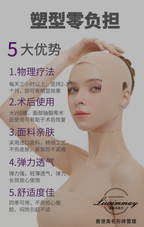 产品功效特点:真人模特一次热压成型,骨骼学,力学同时设计打造。物理全面瘦脸、塑造脸部轮廓、抗衰提升双下巴、预防法令纹、眼袋、脸颊下垂,等等!打造迷人脸蛋,实现逆龄生长!