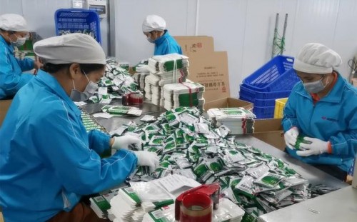 ▲图为双蚁药业生产一线员工提前复工复产。 莫永娟 摄