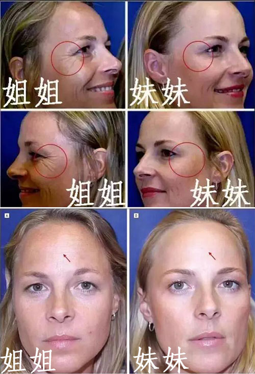 在接受了长达13年的规律肉毒素除皱治疗后,原本长相相仿的双胞胎姐妹花,一个仍然青春靓丽,丝毫看不出已38岁,而另一个已经老态初显,所以这个谣言不攻自破。