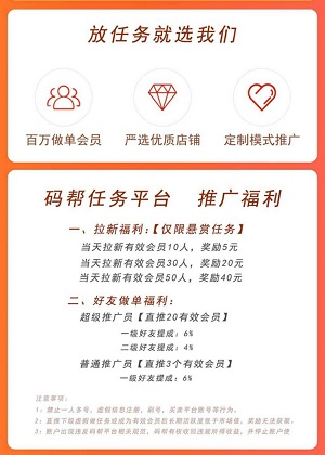 至于为什么那么多人选择去推广码帮,相信是看到了码帮的一些亮点,也就是辅助注册+悬赏任务这种结合的模式,而且码帮刚刚开始不久,我觉得它还没有开始发挥它的实力,之前我在做它的前身码力,也就是闪电接单的时候,也赚了不少钱,而且不单单是我,我相信很多操作的朋友都赚到不少钱,官方更加就不用说了,但是官方可能考虑到长久稳定的发展,就加入了悬赏任务的模式,两者互相结合,这样既不担心辛辛苦苦做的团队没了,毕竟悬赏任务平台,就好像众人帮,趣闲赚那些都可以搞个好几年都不倒,非常长久,加上辅助注册的暴利,又给这个码帮添上了一点颜色,所以我也选择开始全力推广。