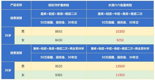 增加了中症、捆绑了癌症二次,30岁投保50万保额,30年交,男性保费相比于轻松守护涨了19%,女性保费涨了9.7%。