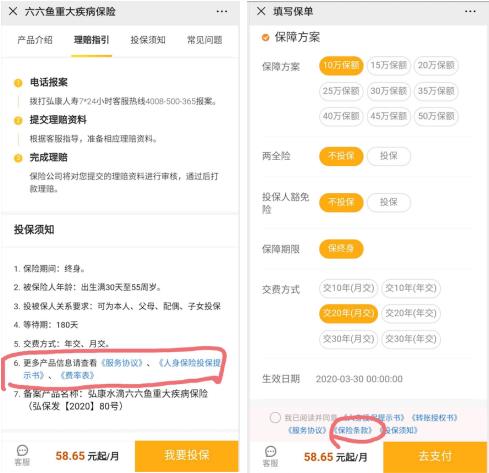 说完了保险产品,再来吐槽下六六鱼产品销售界面的“不合规”之处:
