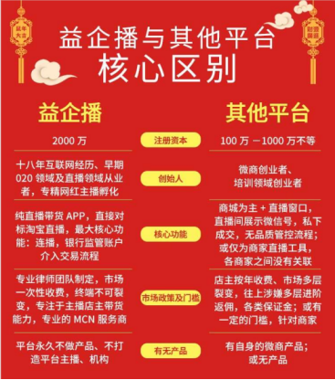 明显区别益企播属于微信直播(私域流量),其他直播(公域流量)