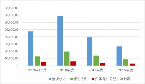 据了解,公司经营业绩快速增长,营业收入由2016年的26,261.34万元增长至2018年的 68,477.33万元,年复合增长率为61.48%;营业毛利由2016年的 8,242.76 万元增长至2018年的19,139.66万元,年复合增长率为2.38%。公司归属母公司股东净利润随着营业收入的增长由2016年的2,825.81万元增长至2018年的5,528.62万元,年复合增长率为39.87%,盈利能力呈现出良好的成长态势。