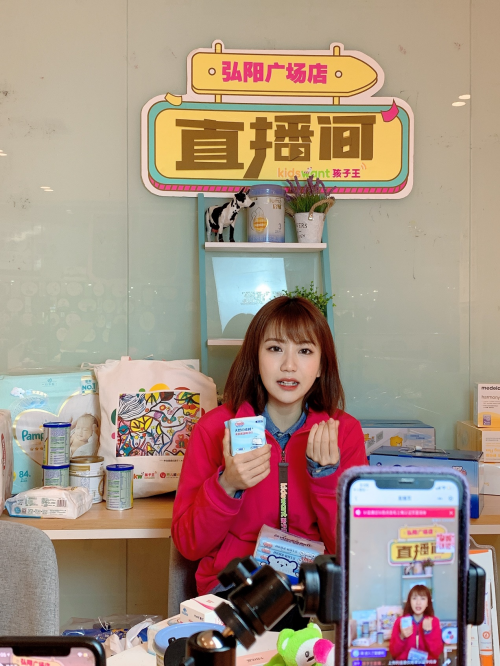 (图:孩子王门店员工在直播间介绍一款母婴商品)