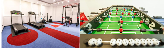 燃烧能量是保持头脑清醒的最好方法,放松的状态中更容易迸发灵感。为让小伙伴们在充实的工作之余能劳逸结合,特别增设健身房区域,并配备跑步机、脚踏机、多功能龙门架、桌上足球等设施,满足不同小伙伴的健身需求。同时,在这里健身还可以看到窗外的都市美景。