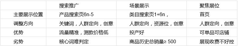 从上面的对比我们可以看出聚焦展位的投入不太可控,所以我们的投入要放在搜索推广和场景展示这两项内容上,也就是我们要从关键词和人群两方面入手。
