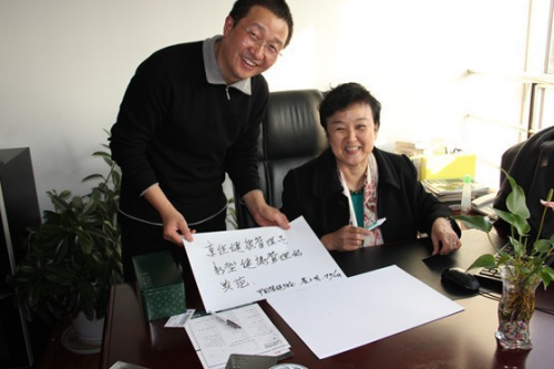 座谈结束后,秦小明女士,贾亚光先生和沈力老师为江苏享佳健康五周年庆欣然题词,对江苏享佳健康的发展寄予厚望。