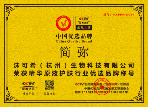 VALICOLAB简弥的全线原液产品均由露丝贝儿生物科技股份有限公司(台湾)研制,品牌方沫可希(杭州)生物科技有限公司是一家专业从事护肤品及养生产品技术开发的企业。公司以“坚持使用有效成分、为亚洲肌肤提供内外兼修的个性化护肤”为使命,以制药企业严谨的作风开发研制高品质的护肤养生产品。同时在2018年被评为CCTV中国优选品牌。