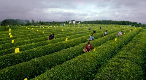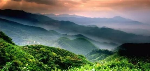 清晨的茶园是最美的,茶树吮吸着露水,茶蕊在晨雾中苏醒绽放。站在茶园最高处,极目远眺,群山错落有序地缱绻在云海里,村庄沉浸在一片雾霭朦胧的世界里,一排排白色木屋在绿色的衬托下,和谐又自然。