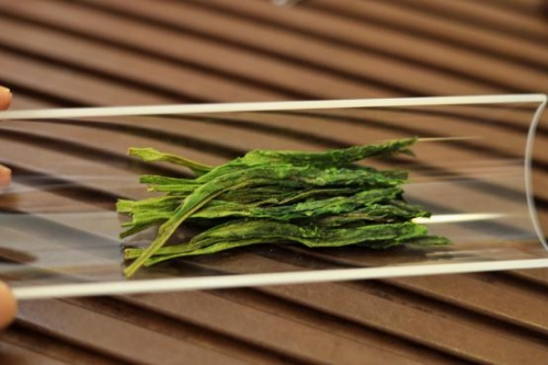 坡地的茶园傍水而建,站在高处鸟瞰,一排排的茶树如同受检的士兵一样整齐列队,一丝不苟。在这个追捧小鲜肉的年代,六安瓜片也因极其追求鲜嫩而格外珍贵。瓜片成品只有一片片的嫩叶,无一丝茶梗,这是名茶中绝无仅有的。
