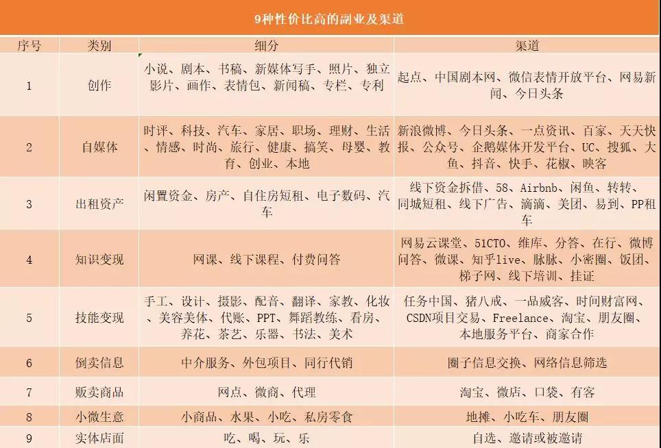 看到这里,可能会有小伙伴们问了:那有没有具体可以参考的副业选择呀?
