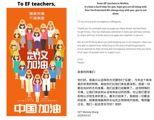 图:英孚员工写给武汉英孚老师的爱心祝福