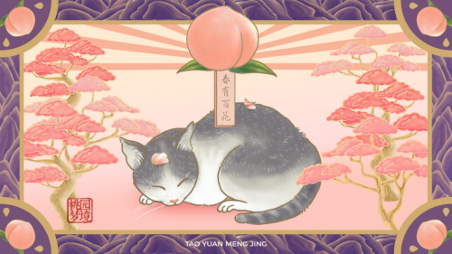 桃园梦境四季手作茶,横空出世,专门解决现在都市人的情怀问题,品牌以融合新亚洲与现代创意美学的设计风格,以桃花源的安宁美好、梦境般的生活场景为故事背景,用新中式山水作为基调,结合高人气萌宠形象,深度满足都市中的年轻群族追求快中有慢、追寻理想生活的状态的需求。
