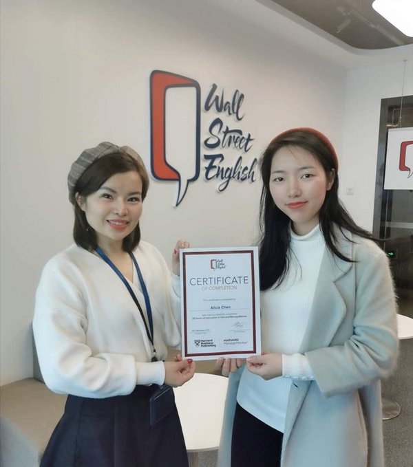 为了提升教学质量,华尔街英语深圳VVIP中教老师们还不断提升自我。Sandra表示在日常工作中,课前老师们都会提前准备充足的材料和物料,有时学员在常规学习内容基础上会有拓展需求,中教老师就需要储备更丰富的知识才能给予学员帮助。“平常我们会利用课余时间积累知识,一方面是提升自己,另一方面是保障能更好的与学员交流,让课程更有质量,让学习更有成效”。在疫情期间,华尔街英语VVIP中教老师们也都没有荒废,而是利用宅家时间自学。“我们要求中教老师们在2020年一季度完成‘哈佛管理导师’中国升级版课程的学习,通过测试并取得证书,有部分中教老师非常积极,在2月就取得了证书。此外很多老师会在家学习更高级别的VVIP课程内容,还会看一些不同行业的、可能与教学和学员有关联的书籍。这些都是对教学工作有益的。”