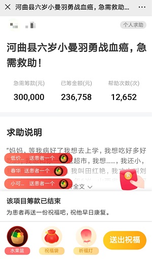 就在一家子绝望之时,轻松筹上收到的5元,10元,20元......让小羽一家看到了希望。轻松筹上小羽的求助被众多爱心人士关注了,大家纷纷献出爱心,汇聚了超23万元的善款。众人的小小爱心,让小羽的生命可以延续,也让小羽一家看到未来的希望。
