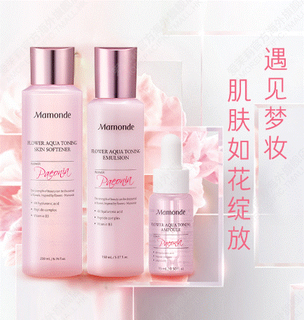 另外还有Mamonde/梦妆花漾沁润水乳安瓶3件套装,这款水乳套装是提取“花中之王”牡丹的根部活性成分“丹皮酚”,融合多重萃取工艺,带来深层滋养嫩滑的效果,透现肌肤粉亮光彩,并且根据临床测试,使用4周后,肌肤状况具有明显的改善,让肌肤深层滋养舒爽更嫩滑