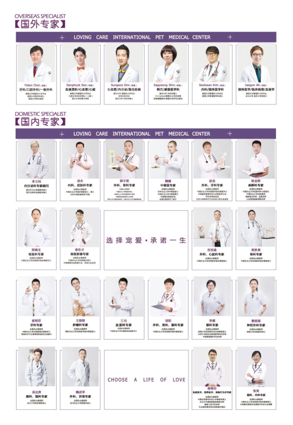 依托连锁品牌高品质医疗的定位和设施设备优势,宠爱国际吸引了一批国内知名专家团队的加盟,组建了一支专业技术过硬的医疗团队。具有硕士博士以上学历达20余人,科室负责人均有十年以上的宠物临床工作经验,立足于北京的同时为全国各地提供宠物医疗转诊服务。