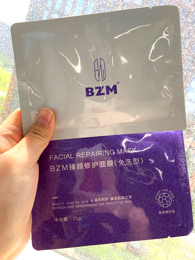 种草一款面膜,当当当,就是bzm家的一款修护面膜,全名叫bzm臻颜修护面膜。