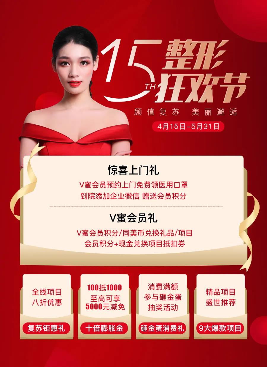 玫瑰医美【第15季整形狂欢节】正式拉开序幕,钜惠全城,点燃嗨购风暴。