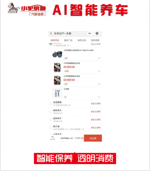 其次在线上,小驴快跑是拥有线上人工智能养车平台,实现透明消费,线下连锁门店,实现标准化服务,线上线下提供完美养车服务的综合体,小驴快跑app,实现了线上透明消费,智能养车,同时具备了车辆检测,保养记录,检测历史,车辆位置查询等功能。