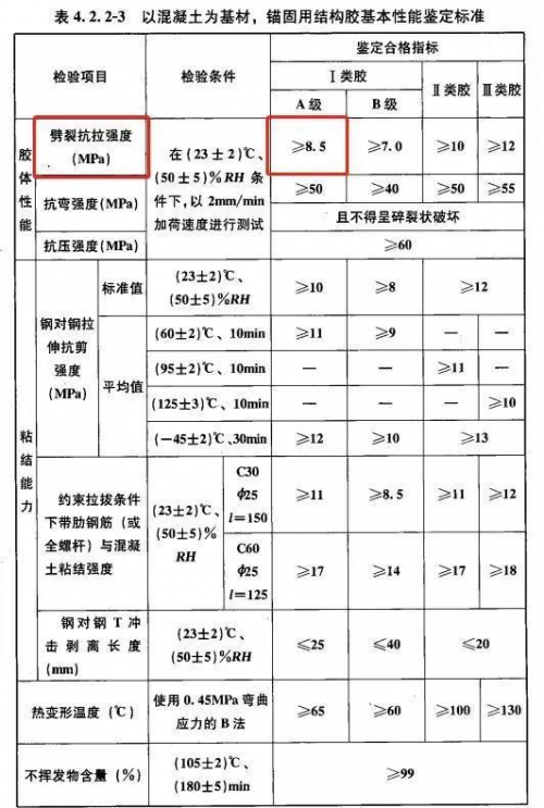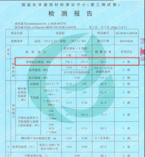而植筋胶多被用在钢筋混凝土结构中,同样其劈裂抗拉强度也是很重要的参考指标,它指的是塑性变形直到出现裂源,材料所能抵抗的最大拉力下的强度,主要反映植筋胶的锚固力,意义重大。