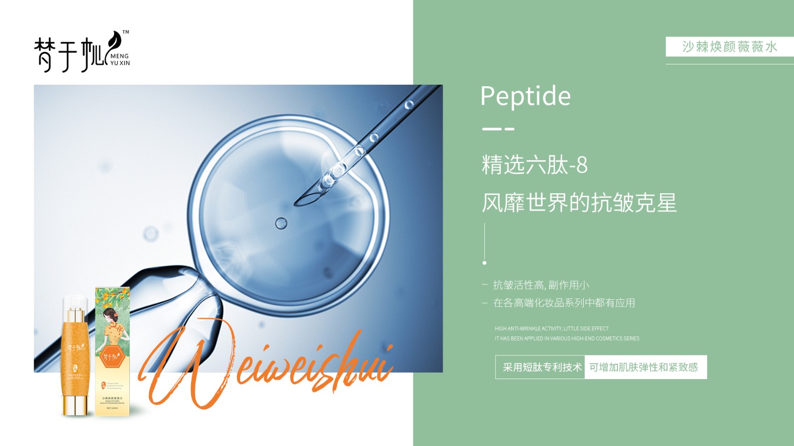 最近有一款“薇薇水”火爆了朋友圈,身边有好几个奔三的朋友都赞不绝口,作为一个热爱护肤的人,我特地去查了下这款新品,它全名叫”梦于杺沙棘焕颜薇薇水”,官方介绍说核心成分是沙棘纯露,寡肽-1和六肽-8等等。三种核心成分都不是普通常见的,我又详细查了一下,发现真的不简单。