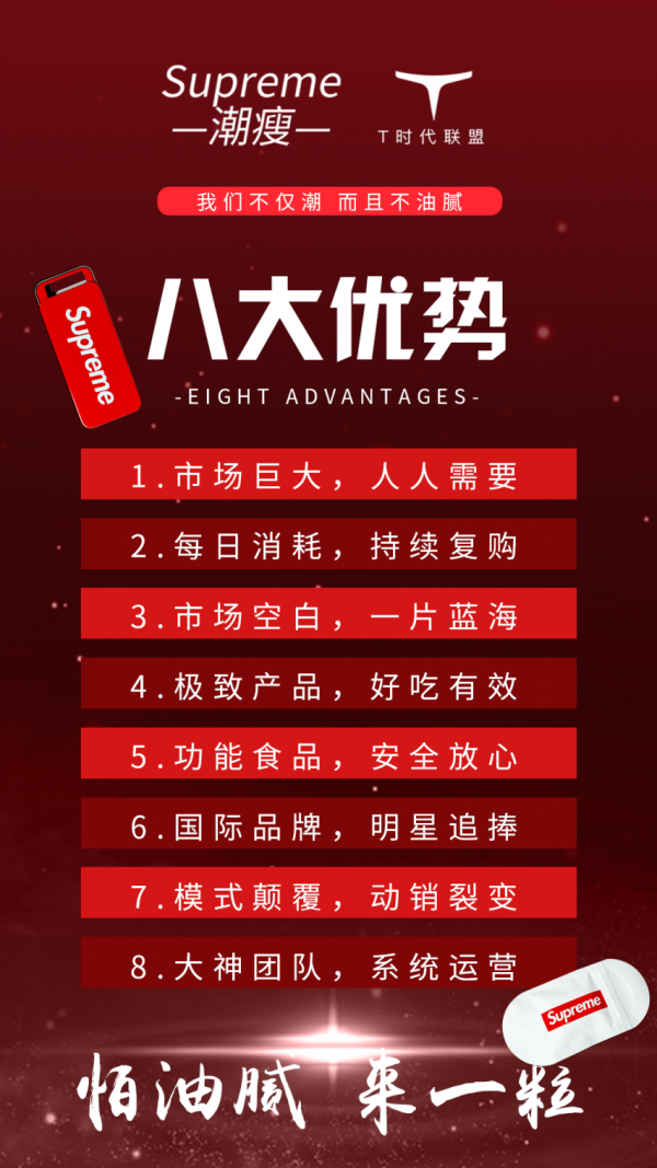 拥有supreme潮瘦,我们不仅潮而且瘦!怕长胖,来一粒———supreme潮瘦!